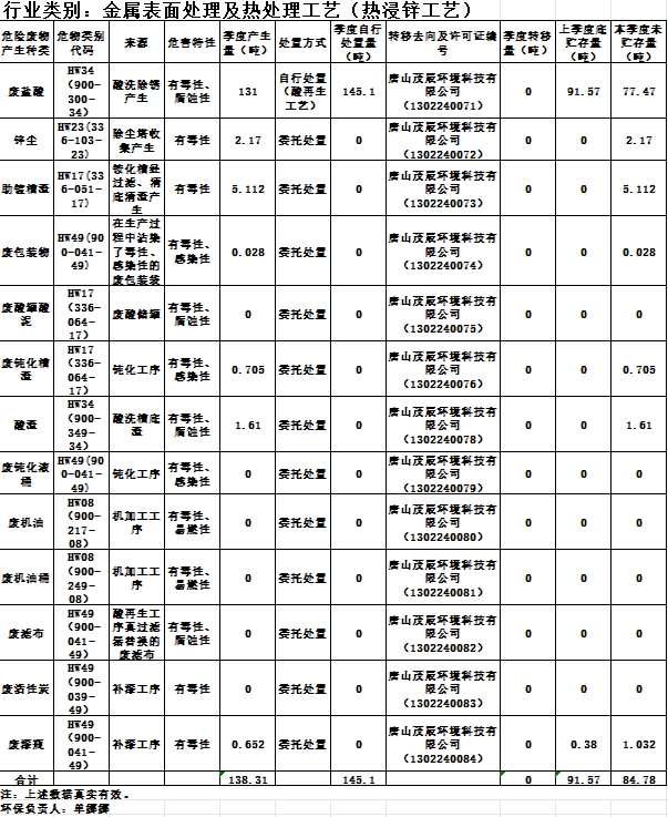 2024年(第一季度1-3月份)危險(xiǎn)廢物信息公開(kāi)明細(xì)